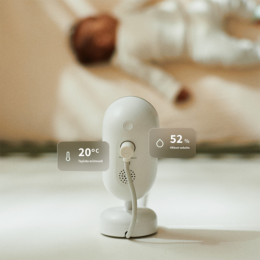Součástí monitoru je také sledování teploty a vlhkosti v místnosti, které vám pomůže zajistit bezpečné a pohodlné prostředí ke spánku.