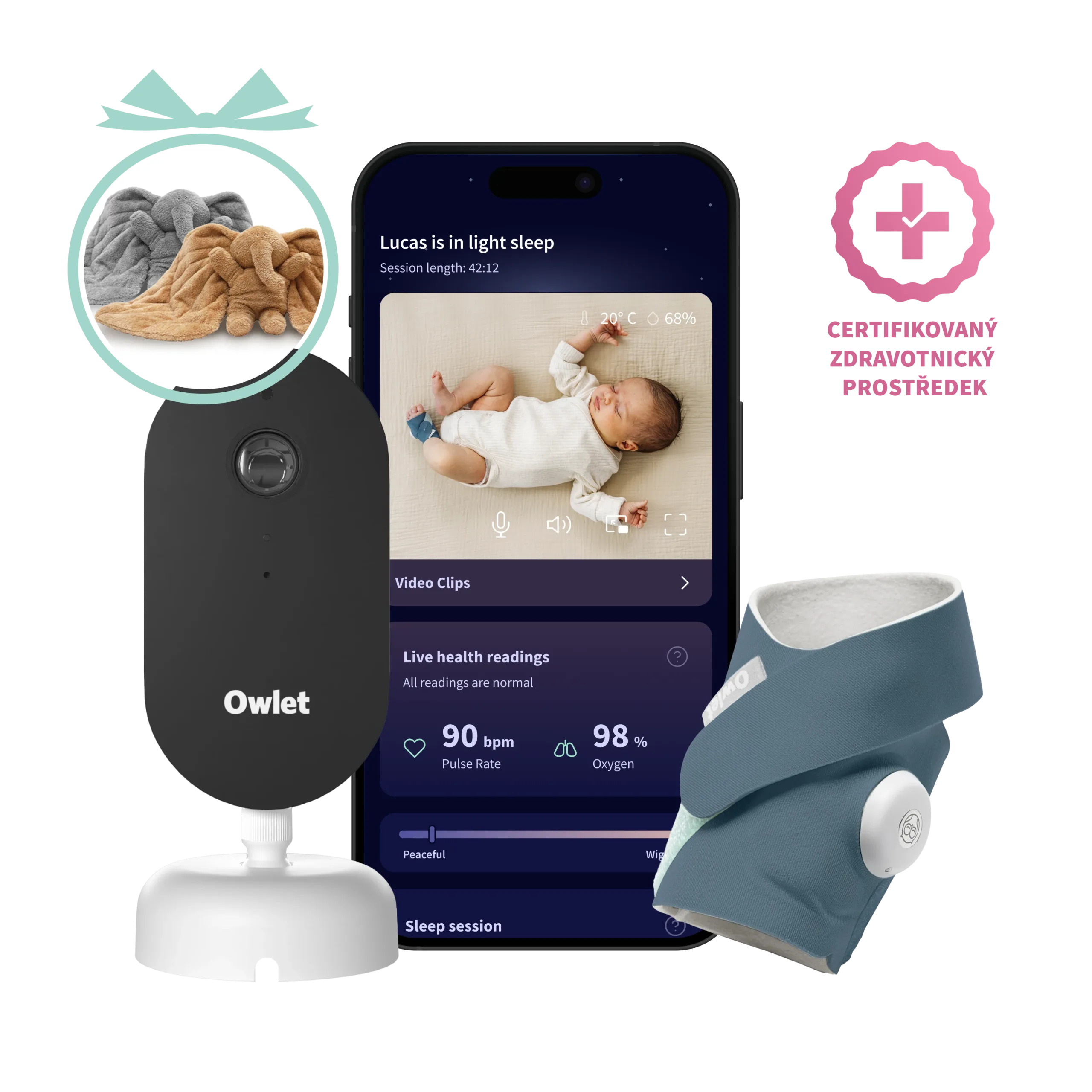 Owlet Dream Duo™ (3. generace) je nejkomplexnější systém monitorování miminka na trhu – spojuje lékařsky certifikovaný senzor Dream Sock®, chytrou HD kameru Dream Sight™ a aplikaci Owlet Dream App do jediného propojeného řešení.